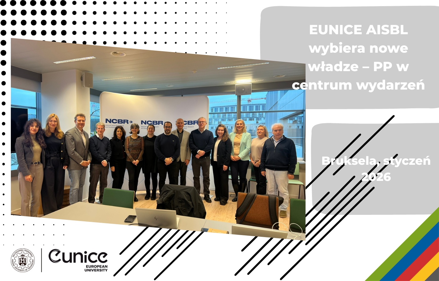 13 stycznia 2026 roku w Brukseli w Narodowym Centrum Badań i Rozwoju odbyło się posiedzenie Zarządu EUNICE AISBL, na którym podjęto strategiczne decyzje dotyczące przyszłości europejskiego sojuszu uniwersytetów EUNICE. Najważniejszym rezultatem obrad był wybór Prezesa i Wiceprezesa organizacji, która kieruje funkcjonowaniem sojuszu na poziomie instytucjonalnym.