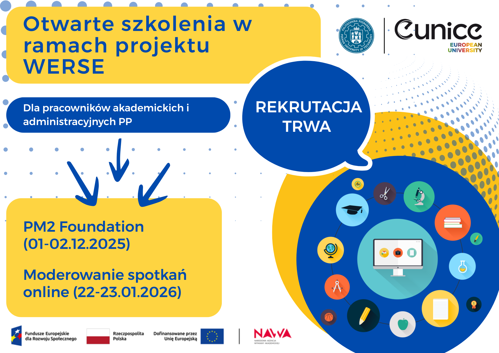 Dział ds. Uniwersytetu Europejskiego ogłasza nabór dla pracowników Politechniki Poznańskiej do udziału w szkoleniach: